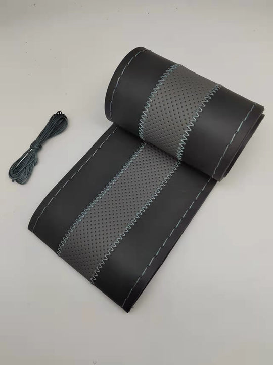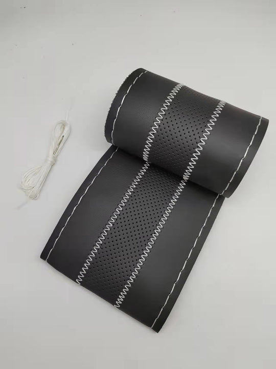 Калъф за волан за обшиване: -Калъфа е изработена от висококачествена перфорирана естествена кожа. -Размера на калъфа е с диаметър от 38см -Черен със сиво и сив конецОбичайна цена 16.80лв/8.18€ -