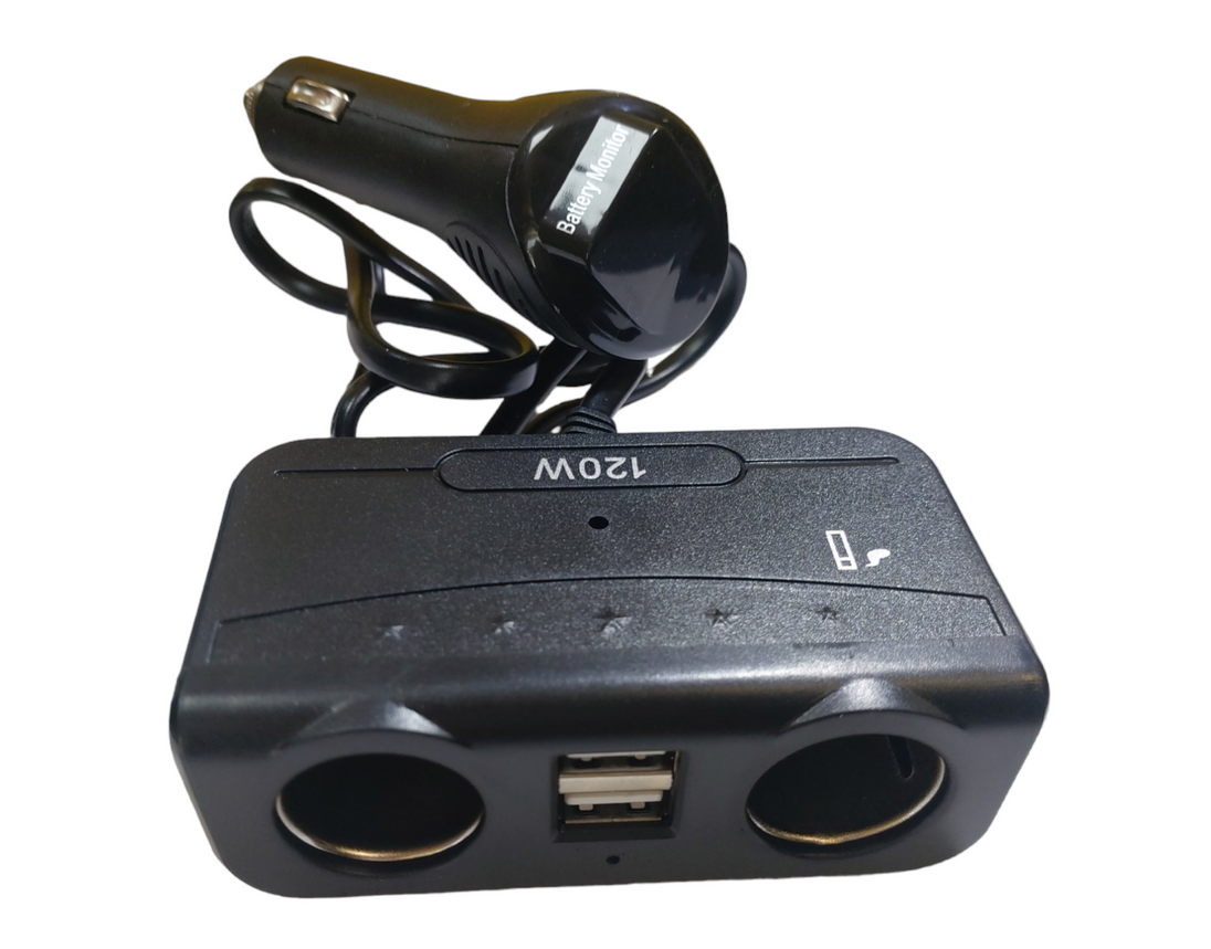 Разклонител за запалка с Волтметър - 1 гнездо за щекер + 1 гнездо за запалка + 2 USB