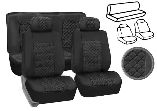 Тапицерия за кола Универсална Кожена Ромбчета 1216 Черно
