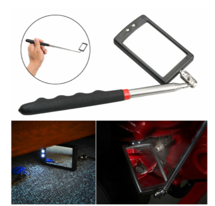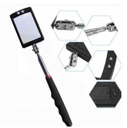 Огледало с телескопична ръкохватка NB-MIRROR01T. Инструментът е подходящ за инспекция на труднодостъпни места и разполага с LED осветление и телескопичната ръкохватка с максимална дължина 870 mm.